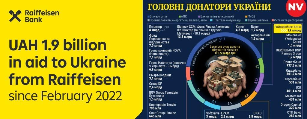 Since the beginning of the full-scale war, Raiffeisen Bank has provided UAH 1.9 billion in humanitarian aid. These findings were published by NV media outlet, which released its 2026 ranking of Ukraine’s leading donors. More details are available in the full article via the link.