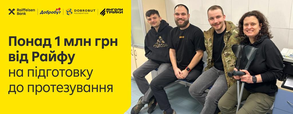 Райффайзен Банк перерахував 1 032 000 грн на підтримку програми «Готові до протезування», яку медична мережа «Добробут» і Dobrobut Foundation започаткували та реалізують завдяки підтримці банку. Кошти спрямовано на реконструктивно-пластичні операції для 12 захисників, які готуються до протезування.