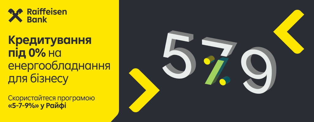 У Райффайзен Банку підприємці можуть скористатися пільговим кредитуванням у межах державної програми «Доступні кредити 5-7-9%» для придбання енергообладнання. Програма спрямована на те, щоб бізнес міг забезпечити стабільну роботу, уникати простоїв і зберігати робочі місця.