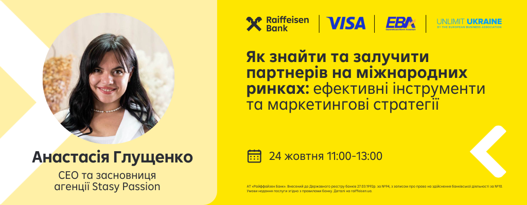 Райффайзен Банк, VISA та Європейська Бізнес Асоціація (EBA) продовжують серію вебінарів на освітній платформі для підприємців SME ONLINE Hub у межах спільного проєкту Unlimit Ukraine.