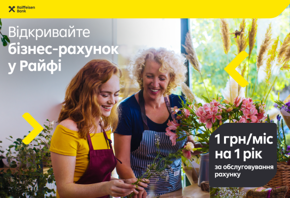 Отримайте рік обслуговування вашого бізнес-рахунку в пакеті послуг «Бізнес Класик» лише за 1 грн на місяць! 😉