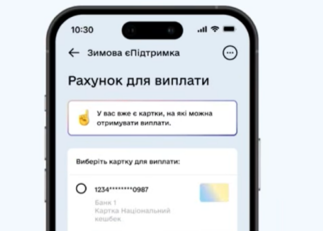 В разі подачі заявки через Дію — на картку «Національний Кешбек».
